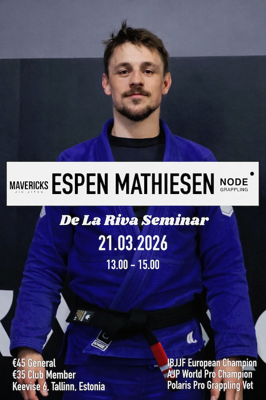 Node Grapplingus tuleb laupäeval, 21. märtsil Espen Mathieseni seminar. Rohkem infot leiab klubi kodulehelt: nodegrappling.ee/news